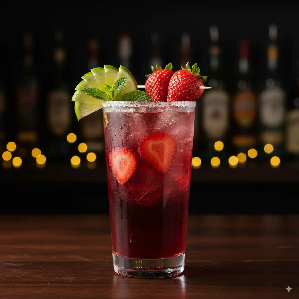 Jägermeister, Jugo de limón, Sprite, Frutilla, Hielo